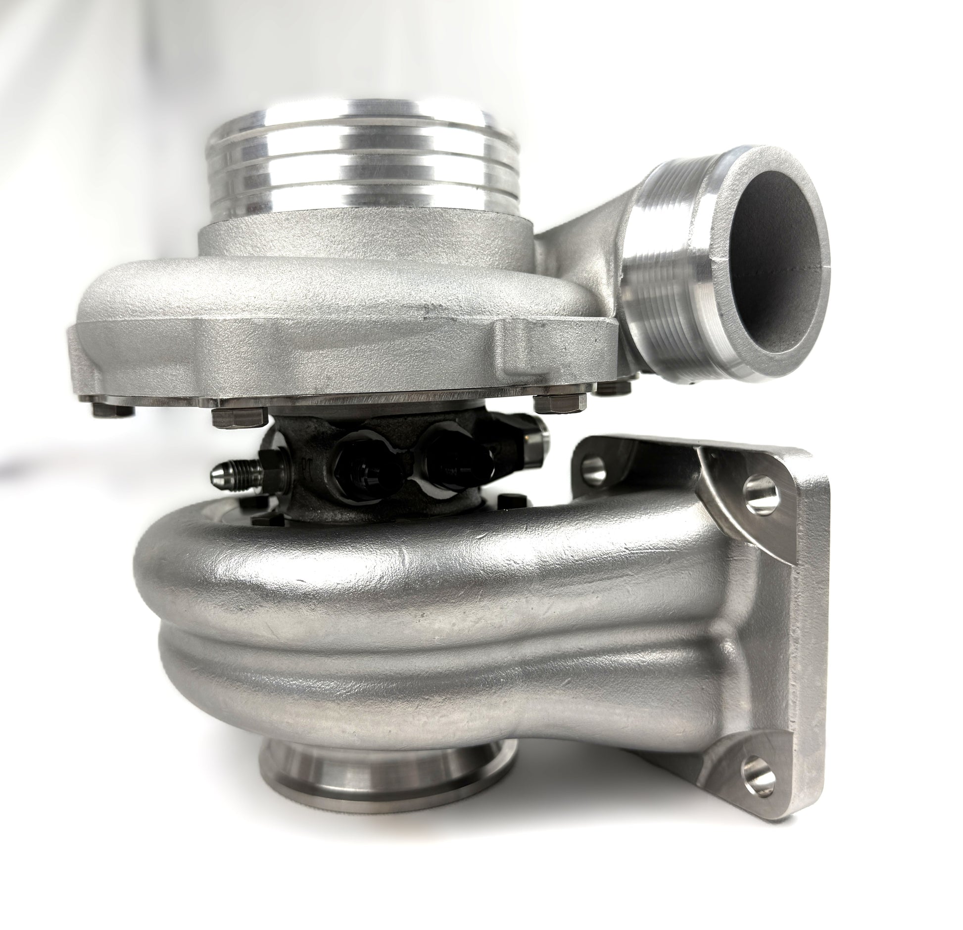 A wide range of turbine options are available, allowing for a perfect turbine match under virtually any operating conditions. For most applications, It's standard radial-flow turbine wheel, made of the high-nickel Inconel 713-C superalloy with .82A/R open volute housing is a great fit. The serviceable and modular nature of the CHRA design, in conjunction with our commitment to customer satisfaction and product adaptability, allows for repair, modification, or upgrading of your turbocharger at any time, without the unnecessary re-purchasing of a entire new unit.